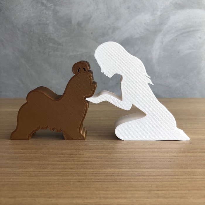 Dueto Menina e Seu Lhasa Apso (pelo Longo) Vegras 1 - Liso Branco