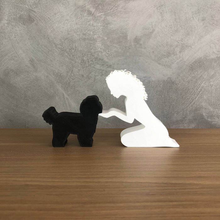 Dueto Menina e seu Maltês (pelo curto) Pequeno