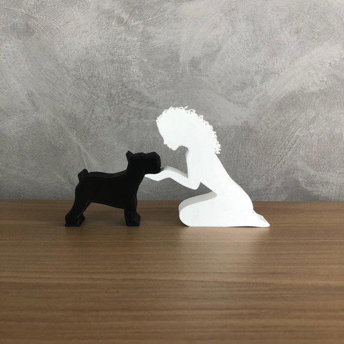 Dueto Menina e seu Schnauzer Pequeno Vegras Afro Branco