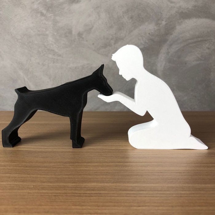 Dueto Menino e Seu Doberman Vegras Branco Branco