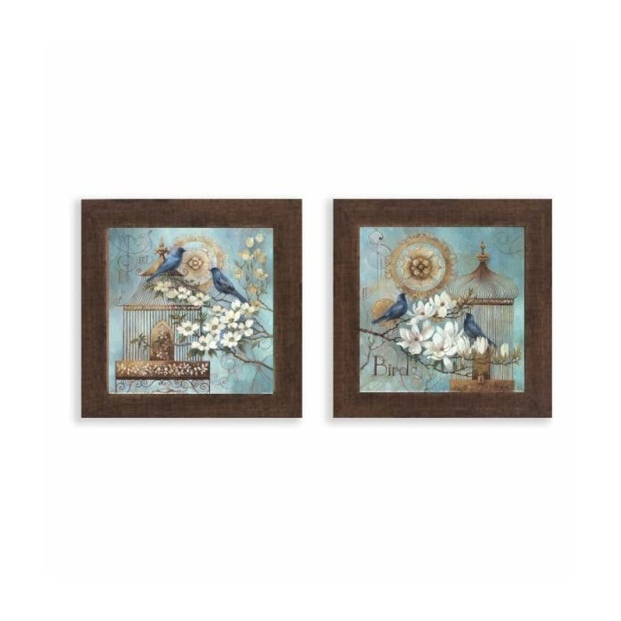 Dupla de Quadros de Pássaros, Marrons com Vidro, 21 cm