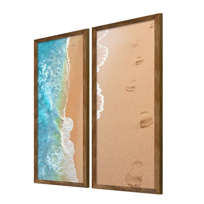 Dupla de Quadros Decorativos Praia Mar Azul para Sala Quarto