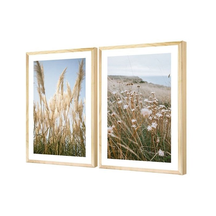 Dupla de Quadros Paisagem Minimalista Moderno Paspatur Trigo Boho Plantas Para Sala