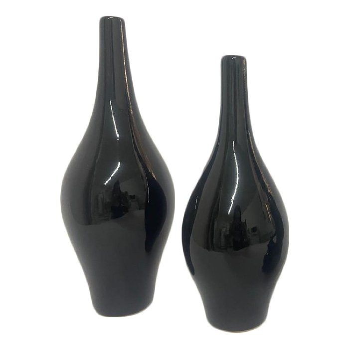 Dupla de Vasos Decorativo em Cerâmica Parati Preto