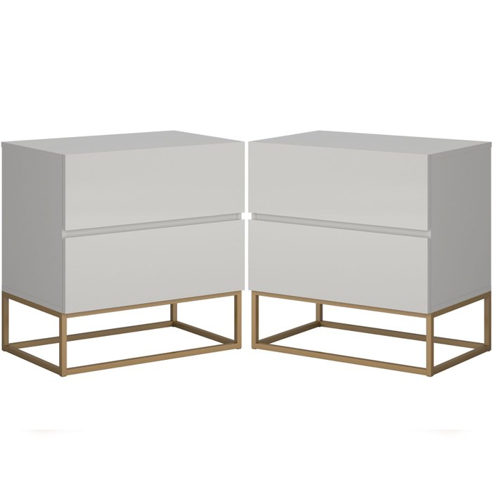 Dupla Mesas de Cabeceira Decorativas Cor Off/dourado 45cm