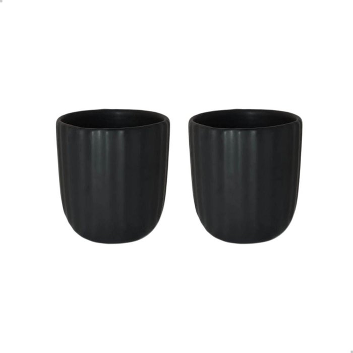 Dupla Vasinho Plissê de Cerâmica para Suculenta Preto