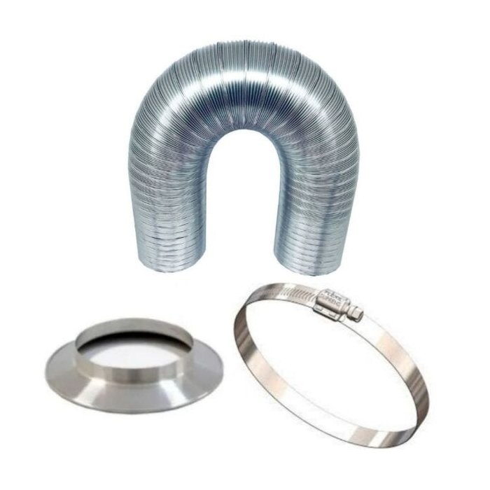 Duto Extensivo 100mm 3m + Anel de Arremate + Abraçadeira Aluminio Exausto Coifa Aquecedo