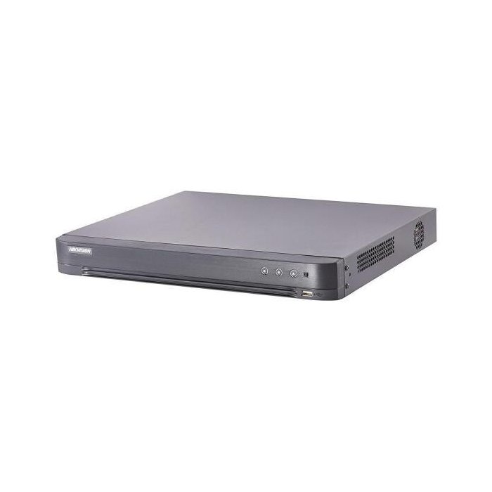 Hikvision DS-7216HUHI-K2 é um DVR CCTV de 16 canais capaz de gravar vídeos de vigilância fornecidos nos padrões HD-TVI, AHD, CVBS e IP. A resolução de gravação máxima é de 5 MP @ 12 fps. O DVR também pode gravar vídeo com resolução de imagem de 3 MP a 18 fps. No caso das resoluções 1080p / 960x1080 / 720p / VGA / WD1 / 4CIF / CIF, a taxa de quadros máxima é de 25 fps.