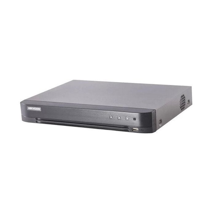 Informações do Produto • H.265+/H.265/H.264+/H.264 encoding for the main stream, and H.265/H.264 for the sub-stream of analog cameras • Self-adaptive HDTVI/HDCVI/AHD/CVBS signal input • Connectable to H.265+/H.265/H.264+/H.264 IP cameras • Up to 3 MP resolution for recording • HDMI output at up to 4K (3840 × 2160) resolution for DS-7216HQHI-K1 • Long distance transmission over UTP and coaxial cable Informações Técnicas Video/Audio Input Audio Input: 1-ch Video Compression: H.265+/H.265/H.264+/H.264 Analog and HD-TVI video input: 4-ch,BNC interface (1.0Vp-p, 75 Ω)connection Supported camera types: Support HDTVI input: 3MP,1080P/25Hz, 1080P/30Hz,720P/25Hz, 720P/30Hz, 720P/50Hz, 720P/60Hz, Support AHD input: 1080P/25Hz, 1080P/30Hz, 720P/25Hz, 720P/30Hz Support CVI input: 1080P/25Hz, 1080P/30Hz, 720P/25Hz, 720P/30Hz Support CVBS input Video Input Interface: BNC (1.0 Vp-p, 75Ω) Audio Compression: G.711u Audio Input Interface: RCA (2.0 Vp-p, 1 kΩ) Two-way Audio: 1-ch, RCA (2.0 Vp-p, 1 KΩ), (using the 1st channel of audio input) Video/Audio Output CVBS Output: 1-ch,BNC(1.0Vp-p,75Ω),resolution:PAL:704x576,NTSC:704x480 HDMI/VGA Output: 1920 × 1080 / 60 Hz,1280 × 1024 / 60 Hz, 1280 × 720 / 60 Hz, 1024 × 768 / 60 Hz Recording resolution: When 1080p Lite mode not enabled: 3 MP/1080p/720p/VGA/WD1/4CIF/CIF;When 1080p Lite mode enabled: 1080p lite/720p lite/VGA/WD1/4CIF/CIF Frame Rate: Main stream: When 1080p Lite mode not enabled: For 3 MP stream access: 3 MP/1080p/720p/VGA/WD1/4CIF/CIF@15fps For 1080p stream access: 1080p/720p@15fps; VGA/WD1/4CIF/CIF@25fps (P)/30fps (N) For 720p stream access: 720p/VGA/WD1/4CIF/CIF@25fps (P)/30fps (N) When 1080p Lite mode enabled: 3 MP@15fps 1080p lite/720p lite/VGA/WD1/4CIF/CIF@25fps (P)/30fps (N) Sub-stream: WD1/4CIF@12fps; CIF@25fps (P)/30fps (N) Video Bit Rate: 32 Kbps-6 Mbps Stream Type: Video/Video&Audio Two-way Audio: 1-ch, RCA (2.0 Vp-p, 1 kΩ) (using the audio input) Audio Output: 1-ch RCA(Linear, 1kΩ) Audio Bit Rate: 64kbps Dual Stream: Support Playback Resolution: 3 MP/1080p/720p/VGA/WD1/4CIF/CIF Synchronous Playback: 4-ch Network management Remote connections: 128 Network protocols: TCP/IP, PPPoE, DHCP, Hik-connect Cloud P2P,DNS, DDNS, NTP, SADP, NFS, iSCSI, UPnP™, HTTPS,ONVIF Hard Disk Driver Interface Type: 1 SATA Interface Capacity: Up to 6 TB capacity for each disk External Interface Network Interface: 1; 10M / 100M self-adaptive Ethernet interface USB Interface: 2 USB 2.0 Interfaces Serial Interface: 1; standard RS-485 serial interface, half-duplex General Power Supply: 12V DC Consumption: ≤ 6W(without hard disks) Working Temperature: -10 ºC to +55 ºC (14 ºF to 131 ºF) Working Humidity: 10% to 90% Dimensions: 315 × 242 × 45 mm (12.4 × 9.5 × 1.8 inch) Weight: ≤ 1.16 kg (2.6 lb)