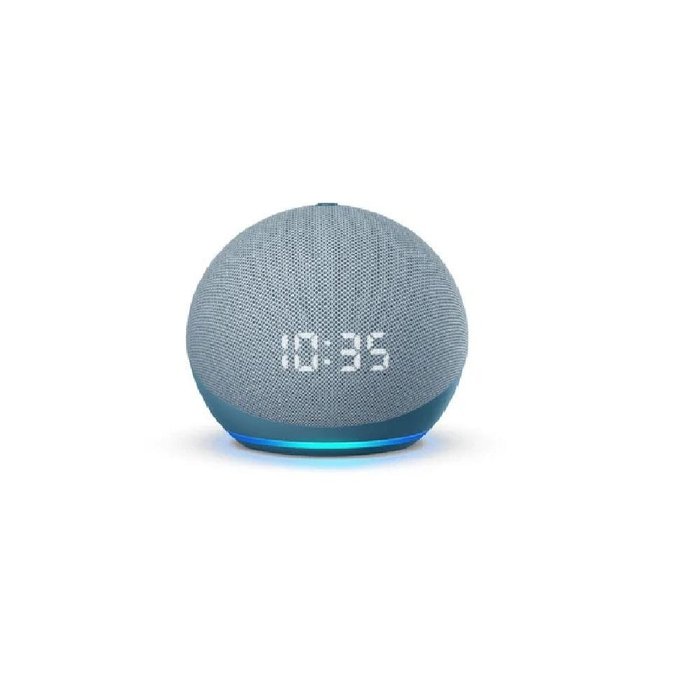 | AtributosProdutoERP | Denominação: Alexa Echo Dot, Marca/Submarca: AMAZON, Formato: com Relógio, Cor: Azul, Processador: 4ª Geração, complemento: Smart Speaker |