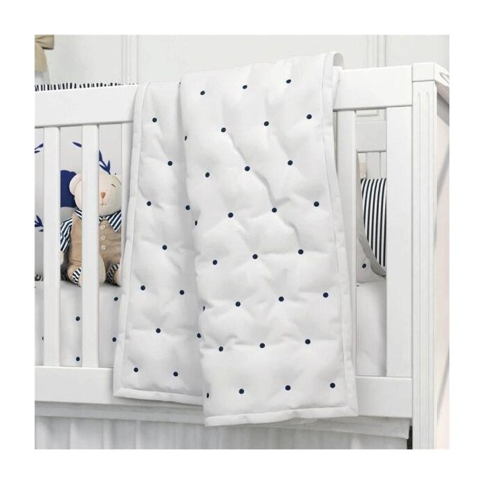 O Edredom de Berço Matelado Luxo Branco/Azul Marinho é um produto exclusivo da Grão de Gente, a principal marca de enxoval e decoração para quarto de bebê da América Latina. Graças à suavidade e ao frescor do tecido 100% algodão, esse edredom acolchoado aquece e protege o recém-nascido na medida certa, em todas as estações do ano.