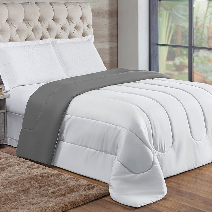 Edredom Cama Queen Percal 200 Fios Dupla Face Cinza e Branco