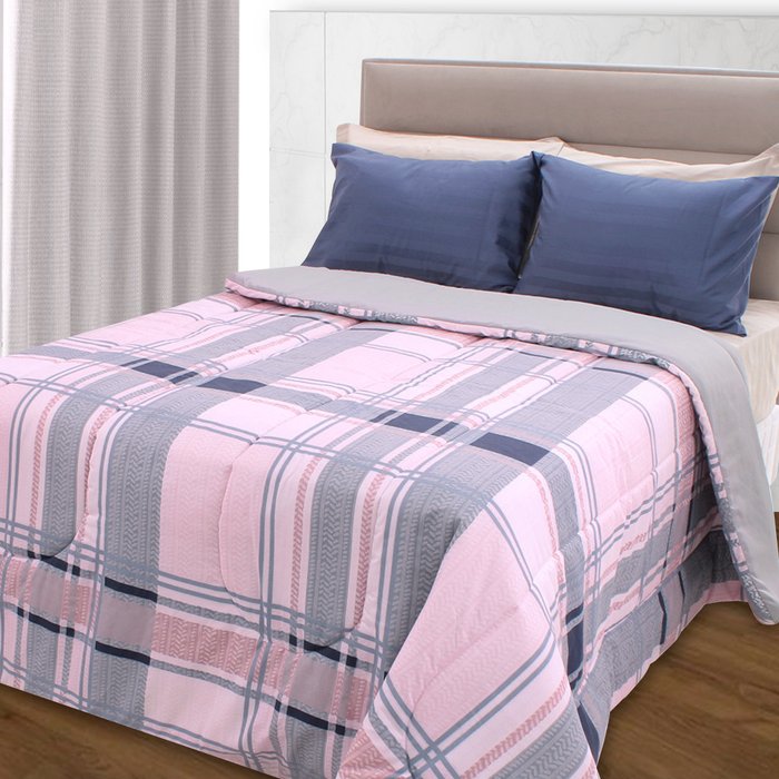 Edredom Casal Antialérgico Dupla Face Estampado 235x190cm BF Colchões Rosa/Cinza