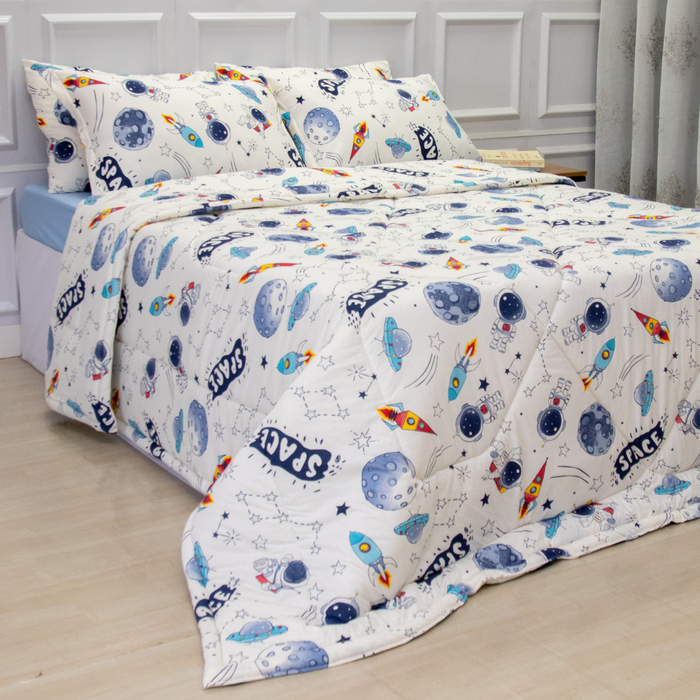 Edredom Casal de Malha 100% Algodão Fio 30.1 Penteado Super Macio - Antialérgico Astronauta