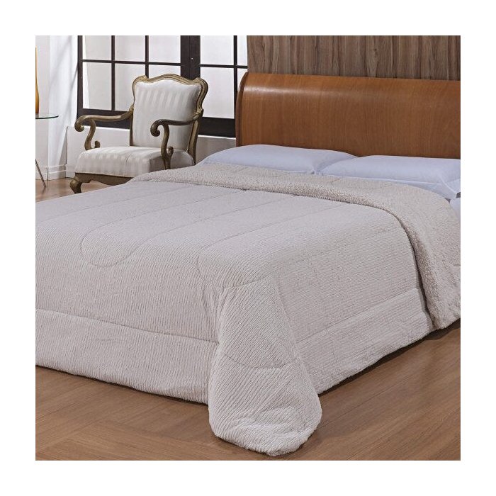 Edredom Casal Dupla Face Microfibra e Sherpa Glasgow Niazitex Marfim