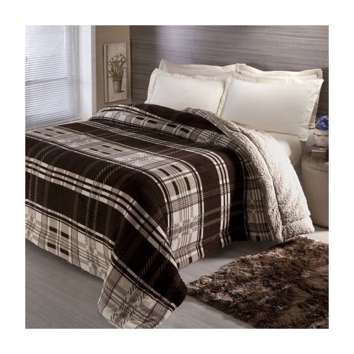 Edredom Casal Flannel Arezzo Dupla Face 1 Peça Jolitex Marrom