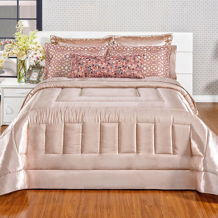 Edredom Casal Padrão Cetim Nude Estampado 7 Peças 2,40m x 2,60m