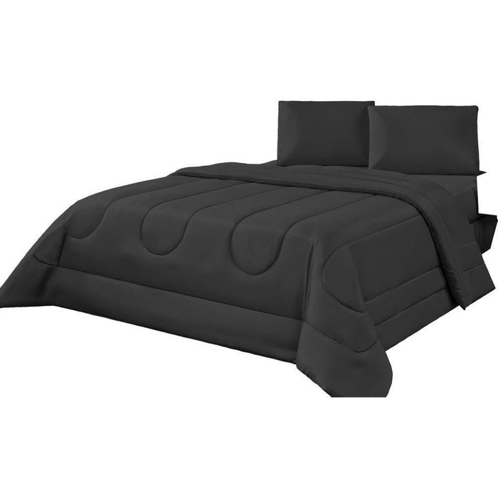 Edredom Casal Queen 3Pçs Cobertor Frio Quente Inverno Preto