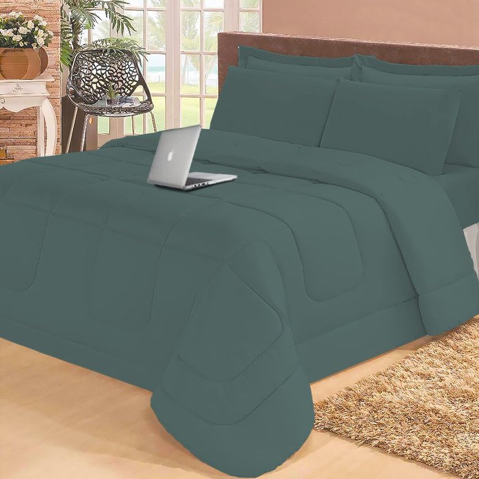 Descrição Edredom com lençol, porta travesseiro e fronha ( 6 peças) À 9 anos a Casa Dona traz oportunidades incríveis ao mercado nacional com a fabricação dos melhores produtos nos seguimento de cama, mesa e banho. Esse excelente Edredom foi desenvolvido para proporcionar mais qualidade e comodidade para o seu dia a dia, tem a função de cobertor especialmente para as noites mais frias! Ele possui parte externa em Poliéster, o qual executa a função de isolante térmico, mantendo o calor gerado pelo seu corpo com toque sedoso e macio, aumentando a sensação de conforto! Além disso, devido sua característica minimalista, poderá complementar a composição de sua cama, como um cobre leito deixando-a ainda mais harmônica. A combinação de cores torna essa peça perfeita para deixar seu quarto muito mais bonito, elegante e sofisticado. Incrível, né? As peças do kit deixam sua cama completa com lençol com elástico que adere bem as laterais do seu colchão, 2 fronhas e 2 portas travesseiros, deixando sua cama igual a de hotel. Pode ser usado tanto em cama casal como queen - Marca: Casa Dona; - Modelo: Aconchego; - Enchimento: Poliéster; - Composição: 100% Poliéster; Medidas: -Edredom: 2,40m x 2,20m; -Porta Travesseiros: 70cm x 50cm; -Lençol Inferior c/ Elástico p/ Colchão de: 1,98m x 1,58m x 30cm; -Fronhas 70cm x 50cm; - Peso: 2,300 kg; -Gramatura: 85g/m² Itens Inclusos 01 Edredom, 02 Porta travesseiros, 01 Lençol Inferior c/ Elástico p/ Colchão, 02 Fronhas LAVAGEM E CONSERVAÇÃO: CUIDADOS NA LAVAGEM E CONSERVAÇÃO: - Lave em máquina doméstica no ?Ciclo Delicado? NÃO UTILIZE O MODULO EDREDOM - Acomode a peça cuidadosamente ao redor do agitador da máquina para evitar rasgos no tecido e embolamento da manta interna durante a centrifugação. - Coloque o sabão líquido neutro no recipiente adequado da máquina, na quantidade indicada pelo fabricante. Dissolva o sabão antes de mergulhar a peça. - Não use água sanitária e nem amaciante. - Evite lavagem a seco. - Não torça o edredom. - Seque à sombra. O melhor processo de secagem é o de estufa, feito em lavanderias especializadas. - Evite passar o edredom. - Não guarde o edredom em embalagens plásticas para evitar fungos. As fotos são meramente ilustrativas. As cores podem variar de acordo com cada monitor