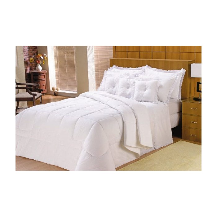 Edredom Casal Super King Branco Kit Raquel Item Incluso Na compra Edredom Casal Super King Kit Raquel com 12 peças -01 Edredom 2,80m x 2,50m -02 Porta Travesseiros 0,70cm x 0,50cm -02 Refis de Travesseiro 0,70cm x 0,50cm -01 Lençol de Cima 2,80m x 2,50m -01 Lençol de Baixo c/ elástico 2,03m x 1,98m x 0,35cm de alt. -02 Fronhas 0,70cm x 0,50cm -03 Almofadas 0,40cm x 0,40cm Composição / Tecido -Tecido: 100% Algodão -Manta: 100% Poliéster Composição dos Refis: -Enchimento: 100% Poliéster -Revestimento: 100% Polipropileno Caracteristicas Edredom Casal Super King Kit Raquel Tamanho:Super KingTipo:Edredom CasalComposiçao do tecido: -Tecido: 100% Algodão -Manta: 100% Poliéster Composição dos Refis: -Enchimento: 100% Poliéster -Revestimento: 100% PolipropilenoQuantidade Peças:12Medida Principal:2,80m x 2,50mCor: BrancoEnchimento:100% PoliésterEstampaLisoAtenção: Imagens meramente ilustrativas. Dependendo da configuração do Computador e do Lote a tonalidade da cor poderá variar alterações. Itens inclusos: A venda deste produto refere apenas ao item incluso descrito acima, sendo de acordo com o tamanho ou cor escolhido caso haja diferenças. Os demais itens e objetos de decoração são vendidos separadamente.