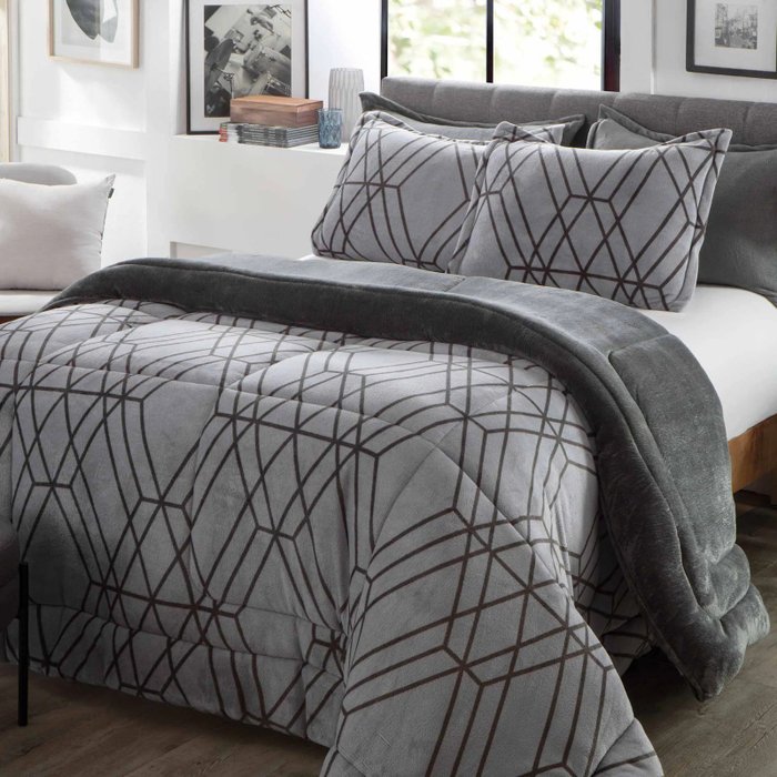 Edredom Coberdrom King Size Gigante Flannel Grosso Geometric