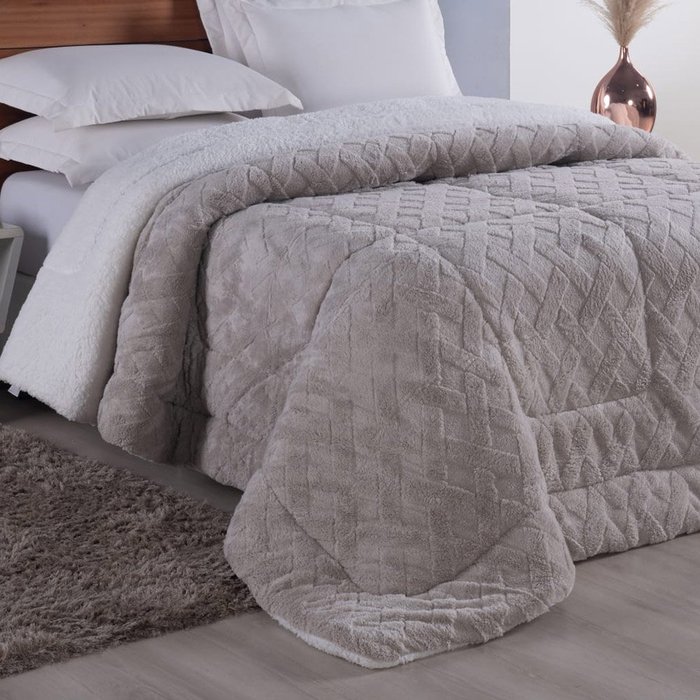 Edredom Coberdrom Oryon King Sherpa e Manta Alto Relevo - Bege Casa Show Enxovais