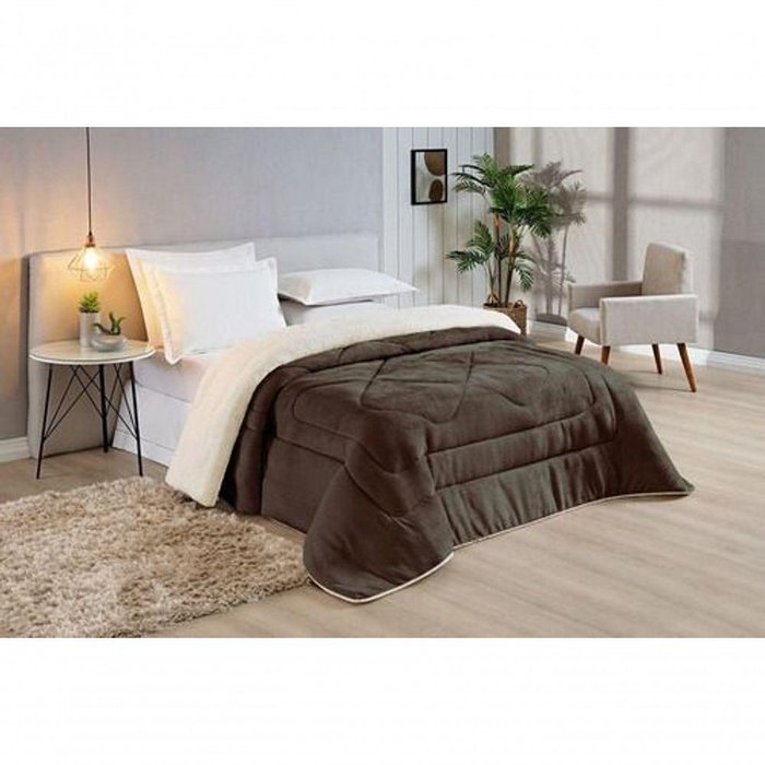 Edredom Coberdrom Sherpa/manta Queen Conforto 01 Peça Cor:marrom