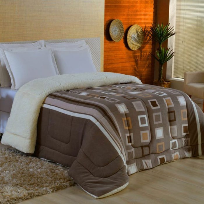 Edredom Coberdrom Sonobom King Sherpa e Manta - Geométrico Marrom