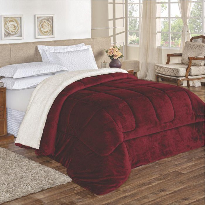 Edredom Coberdrom Versátil King Sherpa Toque Lã Carneiro - Vinho