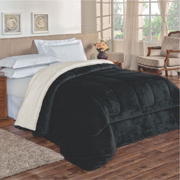 Edredom Coberdron Versátil Solteiro Dupla Face Sherpa Toque Lã Carneiro e Tecido 100% Algodão - Super Macio -