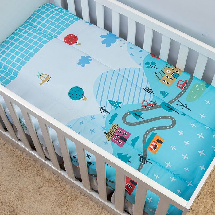 Edredom de Berço Avulso Americano Infantil Estampado Cobertor Bebês Menino Menina Carrinhos Azul