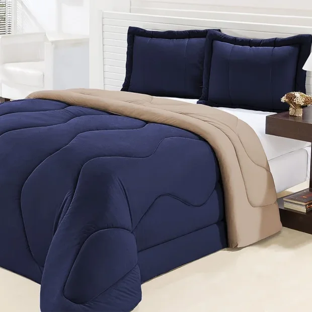 Edredom De Malha Gel Dupla Face Casal Queen 3 Peças Azul Marinho Com Avelã Azul Marinho