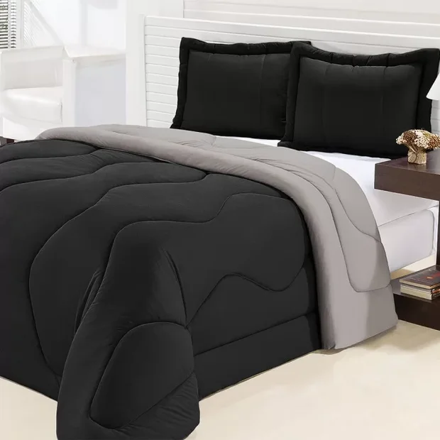 Edredom De Malha Gel Dupla Face Casal Queen 3 Peças Preto Com Cinza Preto Com Cinza