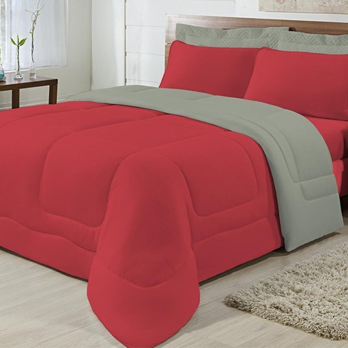 Edredom Dupla Face Casal Padrão Vermelho com Cinza