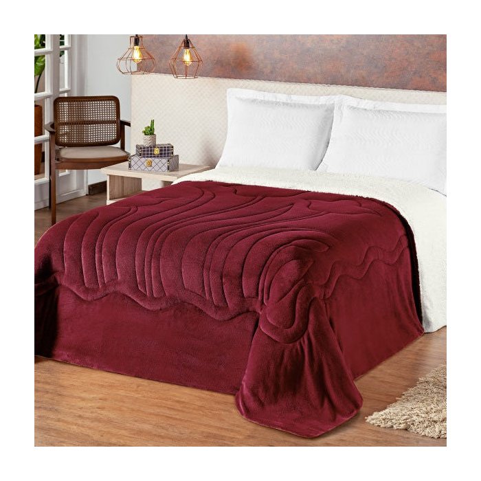 Edredom Dupla Face Casal Queen Manta Felpuda Pele Carneiro Desenho Exclusivo Vinho