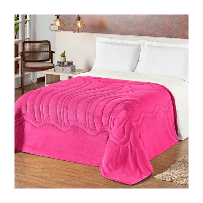 Edredom Dupla Face Queen Pele Carneiro Manta Felpuda Suave Desenho Exclusivo Pink Pink