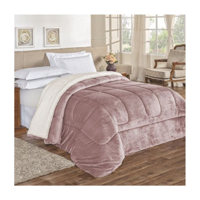 Edredom Esquimó Queen Dupla Face Sherpa Toque Lã Carneiro - Rosê Rosê