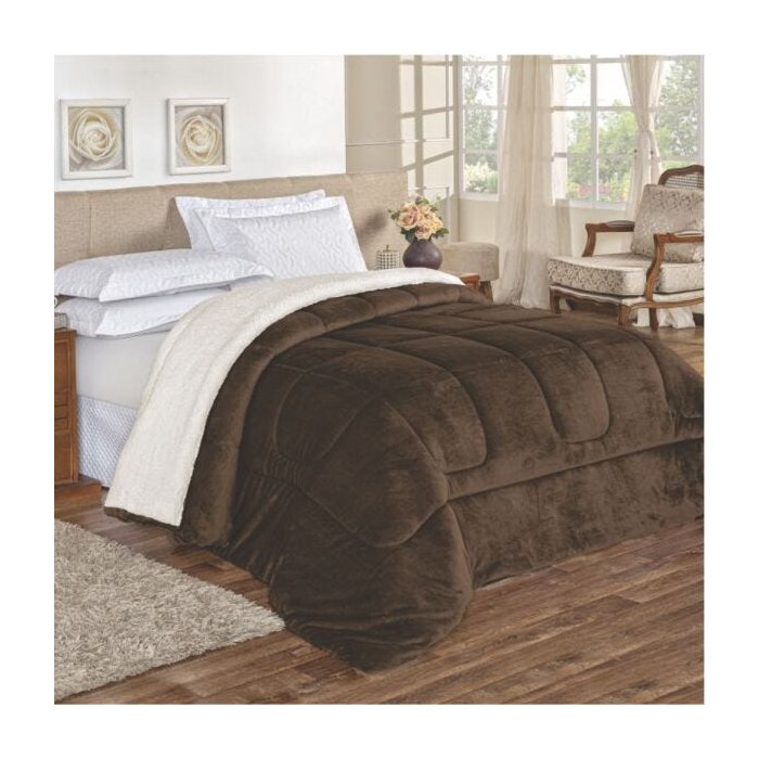 Edredom Esquimó Queen Dupla Face Sherpa Toque Lã Carneiro - Tabaco