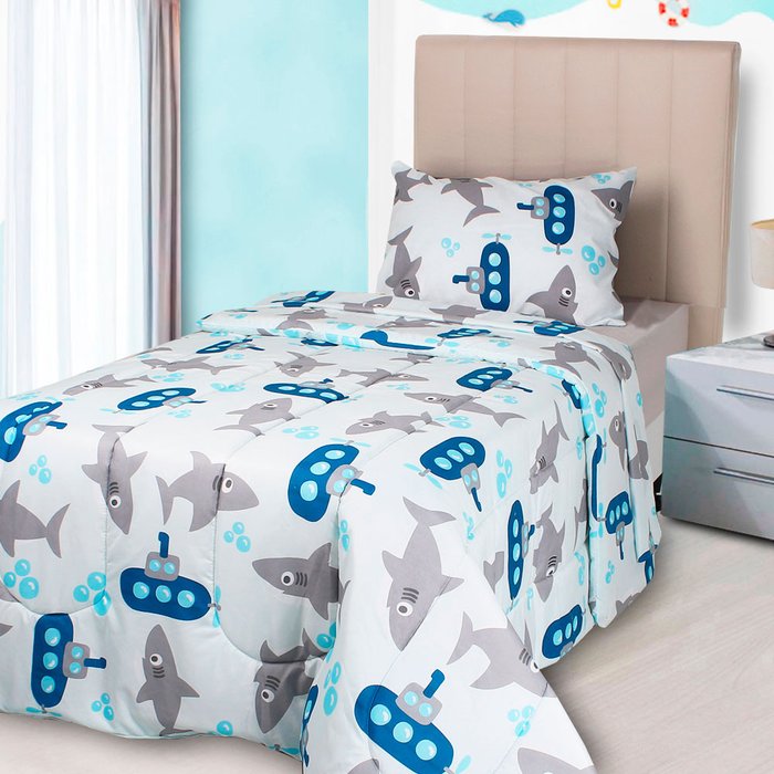 Edredom Infantil Solteiro Antialérgico Estampado 215x150cm BF Colchões TUBARAO