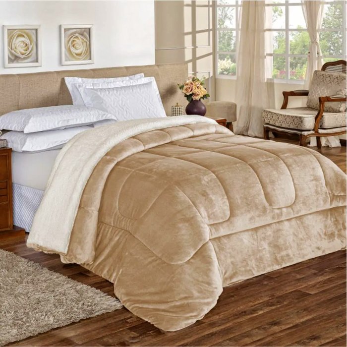 - Edredom Insinuante Casal Dupla Face Sherpa - Cáqui