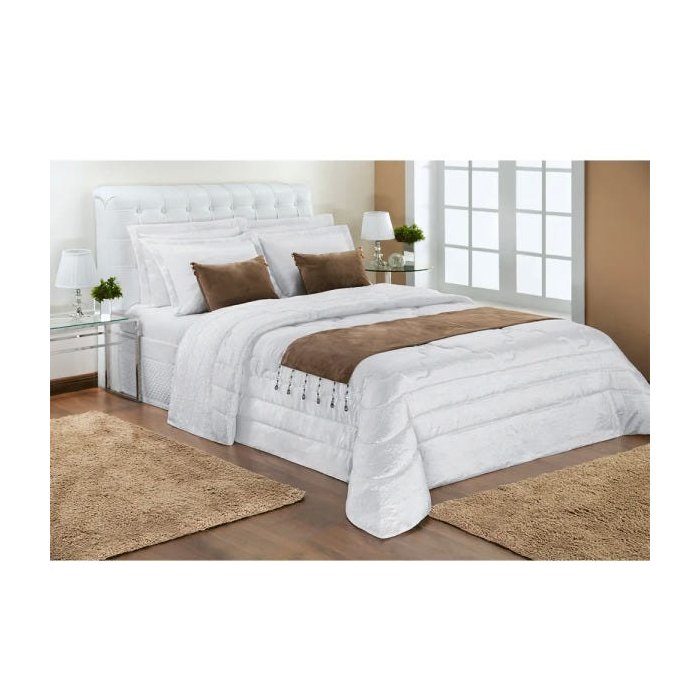 A Linha Realeza da Casaborda une o requinte e a elegância ao ambiente. Fabricada com a mais alta tecnologia e produtos de altíssima qualidade, que garantem um acabamento perfeito ao produto. Esta linha possui cores leves que combinam com todos os estilos e vai deixar seu quarto mais bonito e aconchegante. Confeccionado em tecido Tafetá amassado em 100% poliéster, tecido inferior e enchimento em 100% poliéster.