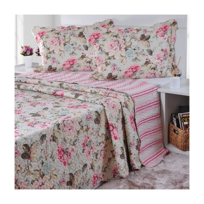 Edredom Matelassê Lit Dupla Face Campestre Casal 3 peças