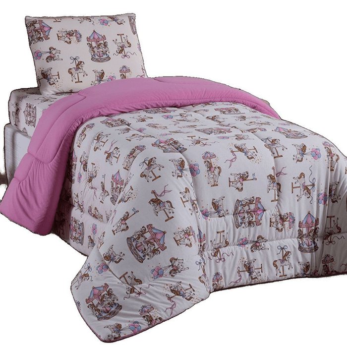 Edredom Mimos Solteiro Dupla Face Malha Manta Soft Carrosel - 100% Algodão