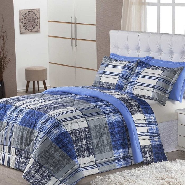 Edredom Monschau Azul Solteiro Dupla Face 120 Fios
