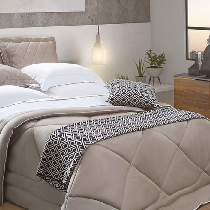 Produzido em tecido matelado 100% algodão, 300 fios e enchimento 100% poliéster. Um toque de conforto e sofisticação que o seu quarto merece. O modelo possui acabamento rolotê nas bordas do porta-travesseiros e na parte superior do edredom. Por ser liso, é perfeito para coordenar com diversos jogos de cama. Porta-travesseiros acompanham o edredom. Ótima opção para quem busca qualidade e requinte. Foto meramente ilustrativa. Contém: 1 edredom 240x260cm 2 porta-travesseiros 50x70cm INSTRUÇÕES DE LAVAGEM MARKEN FASSI • Sobre os bordados passar até 80ºC; • Lavar com sabão neutro; • Lavar até 60ºC processo suave; • Não alvejar ou branquear; • Não secar em tambor; • Passar até 110ºC; • Vapor pode causar danos irreversíveis; • Não limpar a seco. Dicas de conservação Catran: - Siga sempre as instruções de lavagem e conservação dispostas na etiqueta ou embalagem do produto.