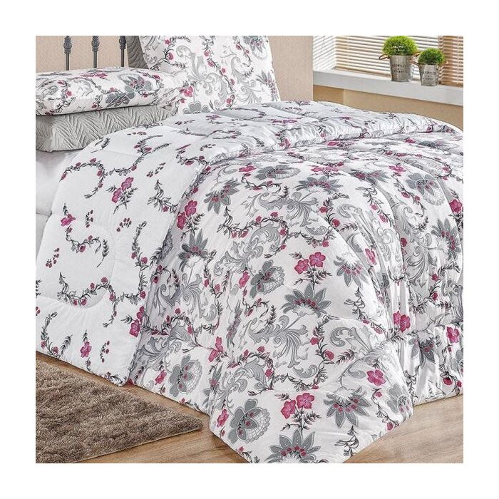 Edredom Queen Dupla Face Esmeralda 01 Peça Estampado - Indiano Cinza
