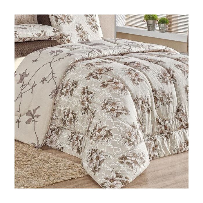Edredom Queen Dupla Face Esmeralda 01 Peça Estampado - Margarida Bege