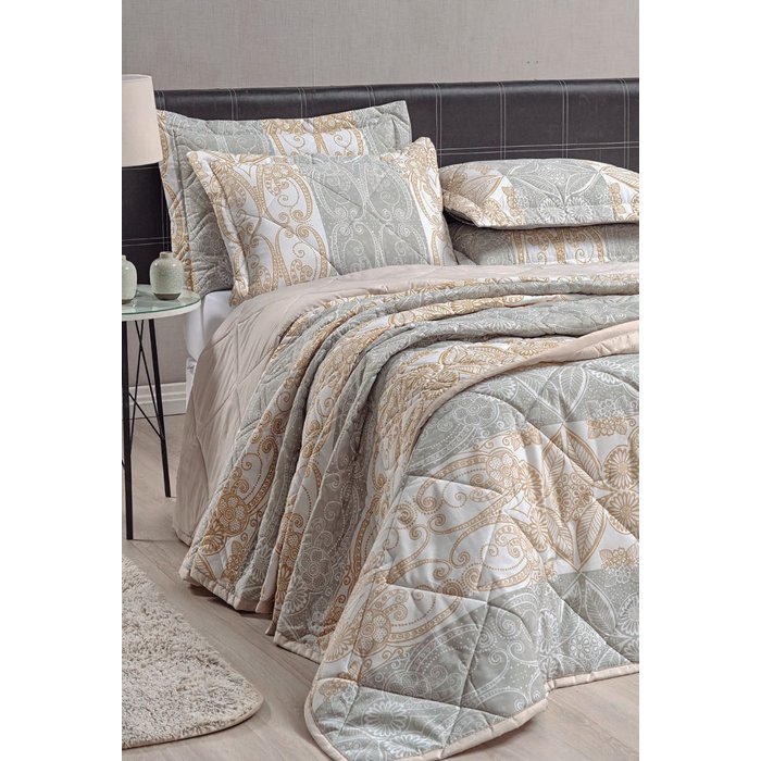 Kit edredom Eldorado Bege/cinza Dupla face.