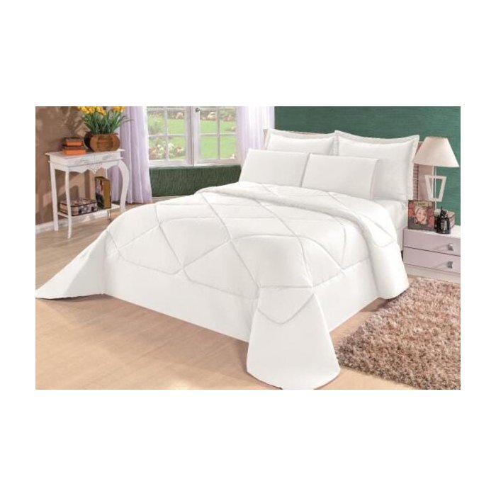 Edredom Casal Queen + Lençol Conforto Dupla Face 6pçs Branco