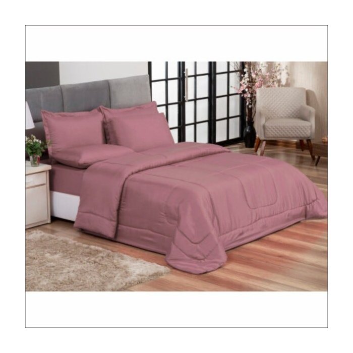 Edredom Queen Rosé + Jogo de Lençol 06 peças Aconchego Dupla Face Casa Dona